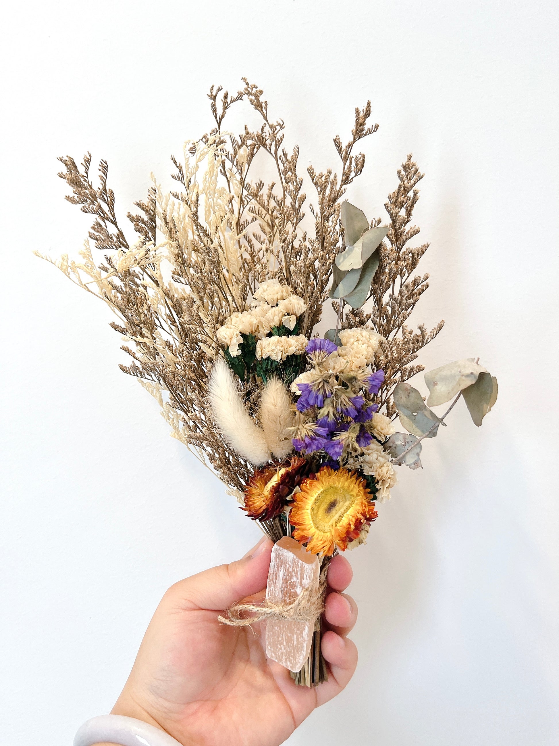 Natural dried flowers x Peach selenite stick: Clarity • Self-awareness • Transformation